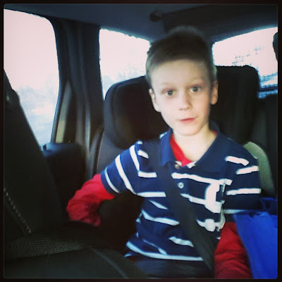 For Holy Thursday, last day before Easter vacation, the kids could dress up if they wanted to. Linus told me that he wanted to dress up as the Easter bunny.